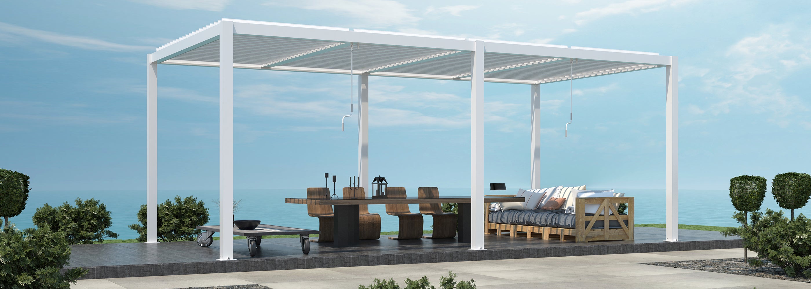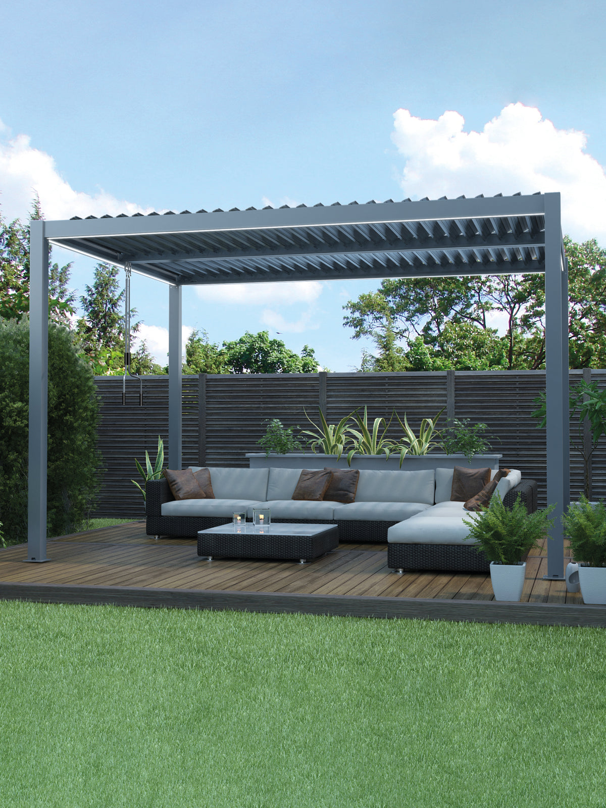 Le nostre pergole sono strutturate in puro allumino di altissima qualità per garantire la massima rigidità e resistenza, sia agli eventi atmosferici che all'usura del tempo.